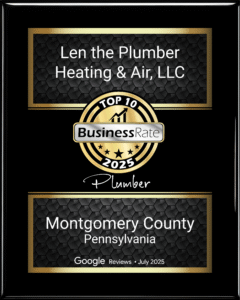 Len The Plumber Heating & Air was named a BusinessRate Top 10 Plumber in Montgomery County, PA